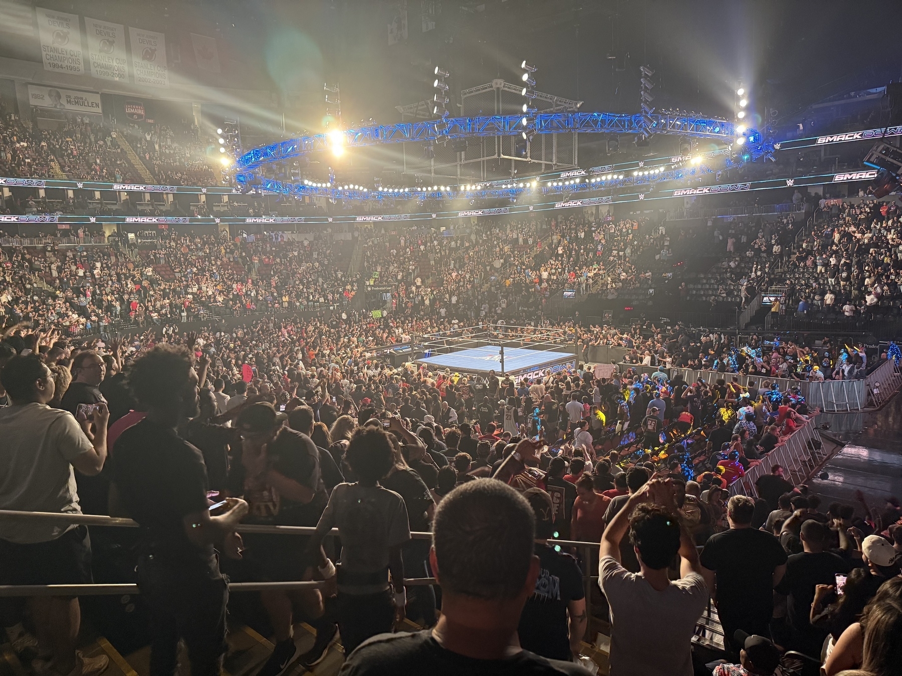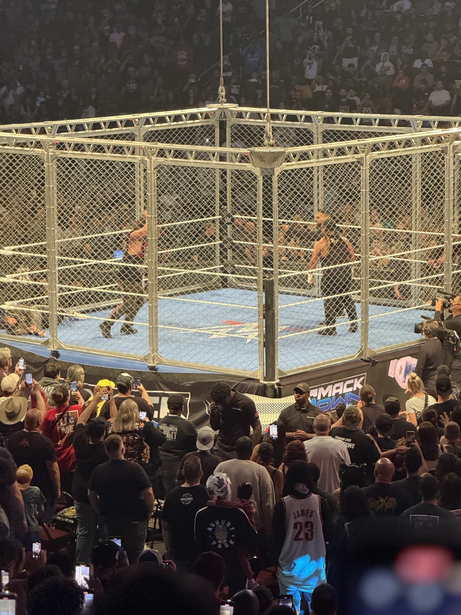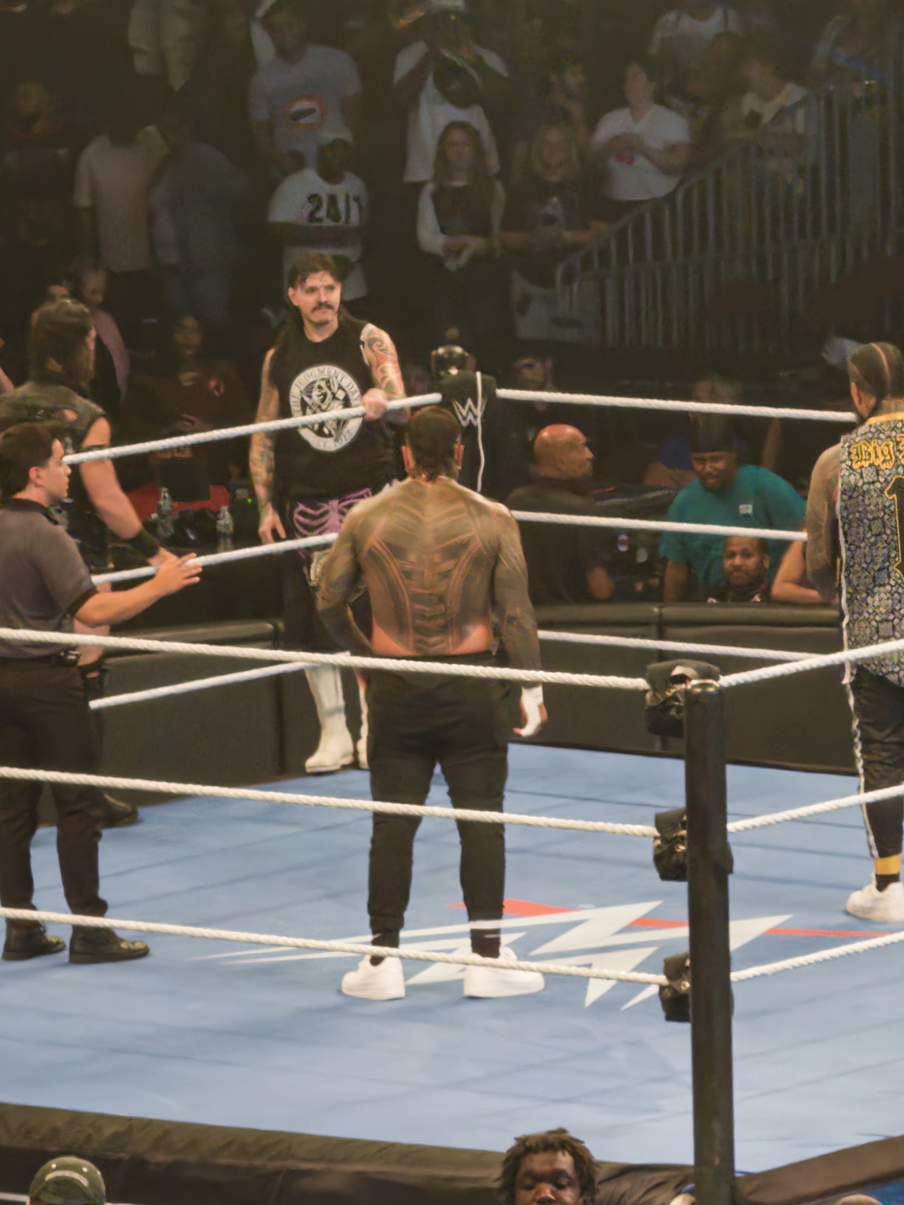 We got Rusev vs Sheamus and USO’s vs Judgement Day off camera where Jey restarted the yeet song SO MANY TIMES. Last pic shows how full it still was after the last dark match. #smackdown
